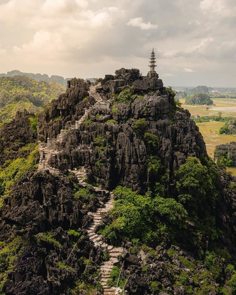 16h00 :Di chuyển đến Hang Múa quý khách bách bộ qua những lối đi vòng vèo được bao phủ bởi cay xanh và các kiến trúc non bộ đẹp mắt và sau đó hành trình trinh phục đỉnh Hang Múa với 500 bậc đá.Tới đỉnh núi Múa thu vào trong tầm mắt của quý khách là tất cả đất trời của mảnh đất Hoa Lư rộng lớn với vẻ yên bình. Quý khách có thể thuê bộ đồ để check in toàn cảnh Tam Cốc, tháp đá trên đỉnh núi,… siêu đẹp.